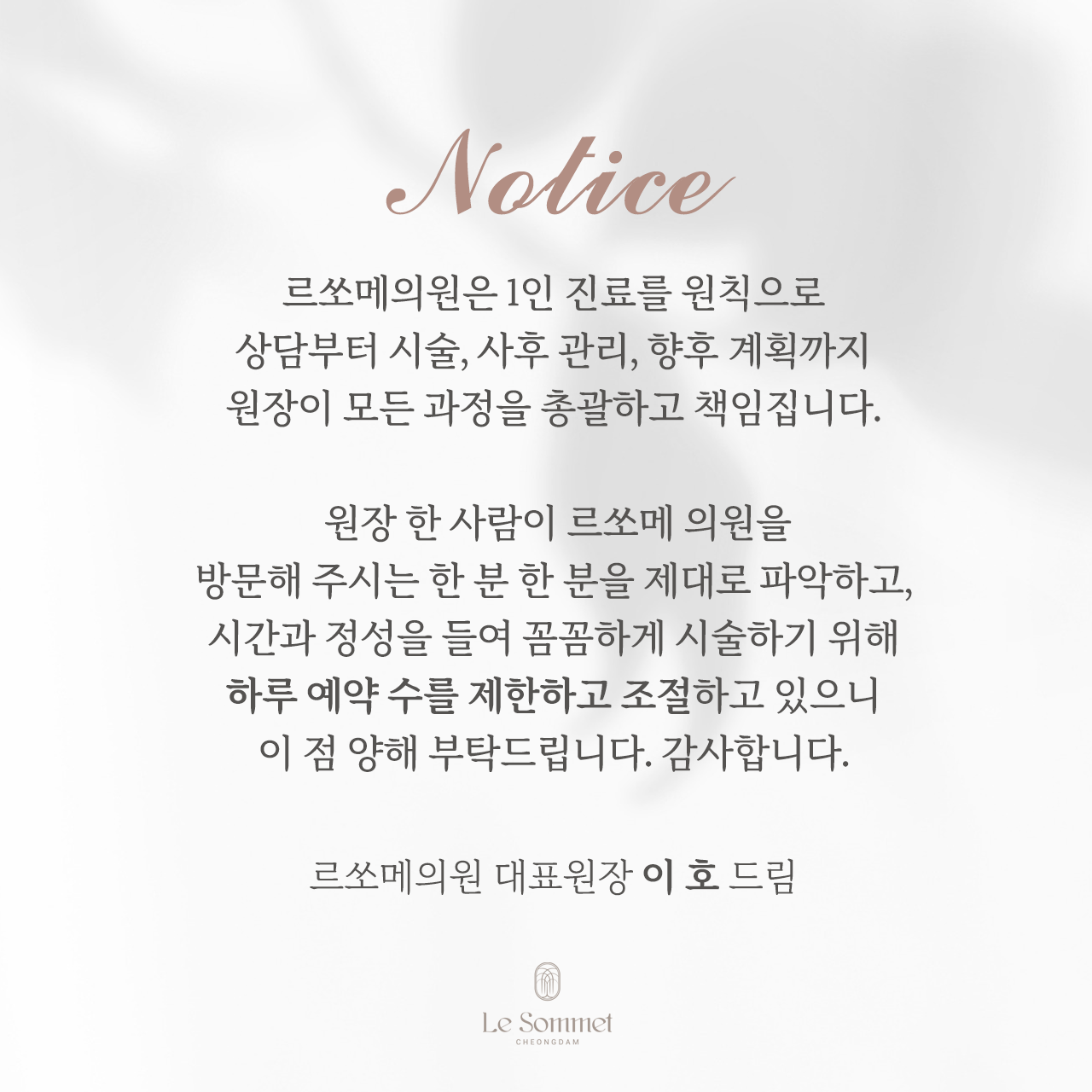 르쏘메는 단 한 번의 인연도 감사히 여기며,당신의 아름다움을 찾는 과정과 시간을 가치 있게 생각합니다.
