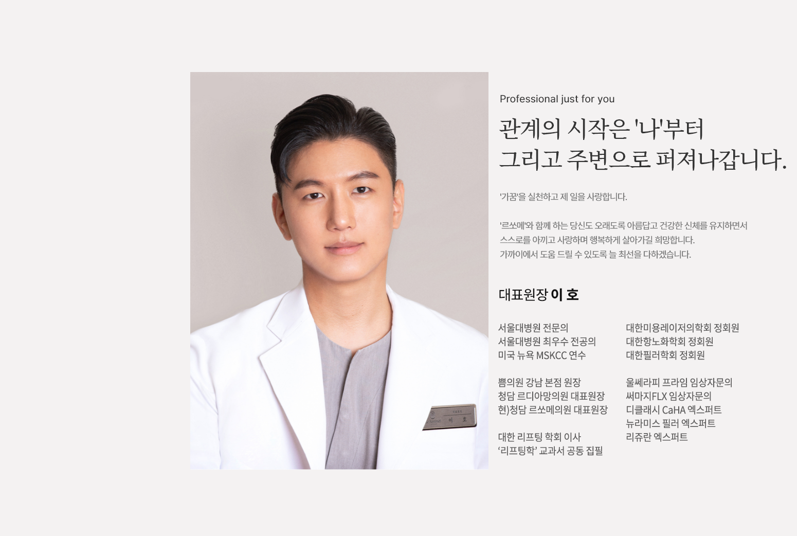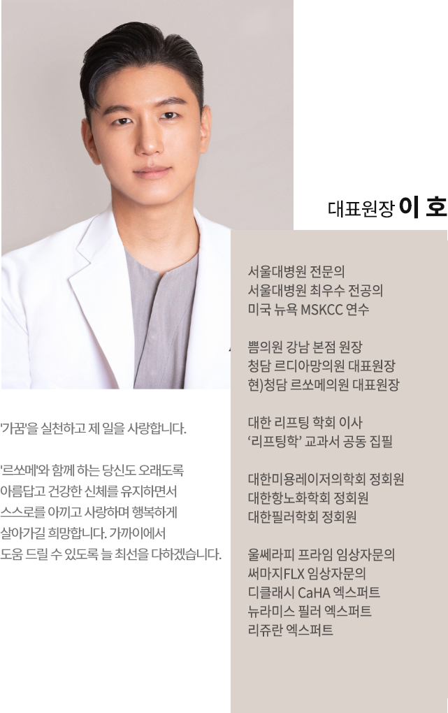 아름다움이 변하지 않는 '최고', '정점'의 나를 찾고 지켜가실 수 있도록 연구합니다.